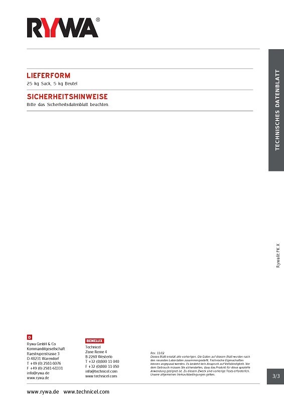 - 25 kg Rywalit® FK X mit einem Rührwerk kräftig einrühren, bis ein geschmeidiger, dickpastöser Mörtel entsteht.