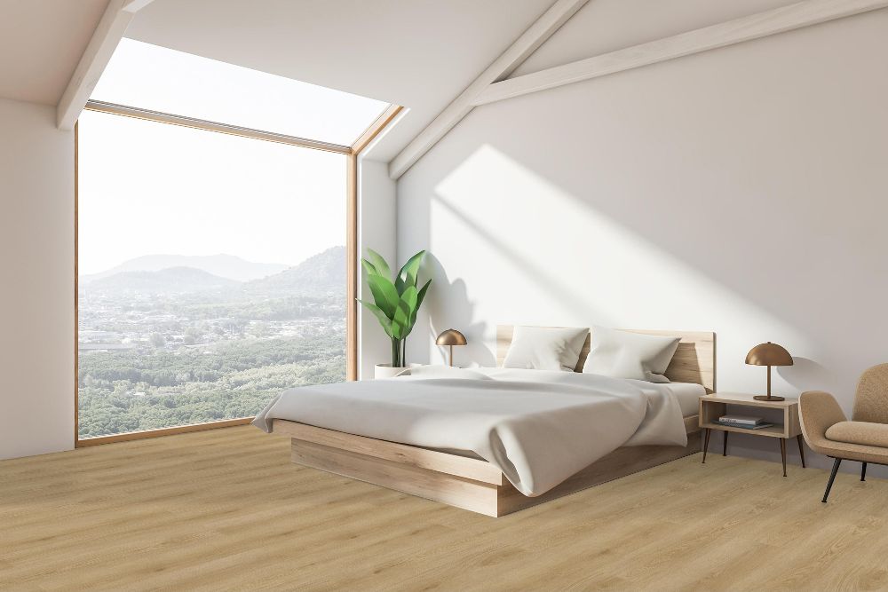 Weil CHECK one über eine härtere Trägerplatte verfügt, kann es auch an Orten verlegt werden, wo herkömmlicher Vinylboden durch Hitze weich werden könnte, zum Beispiel an bodentiefen Fenstern oder in Wohnwintergärten (gemäß Herstellerfreigabe).