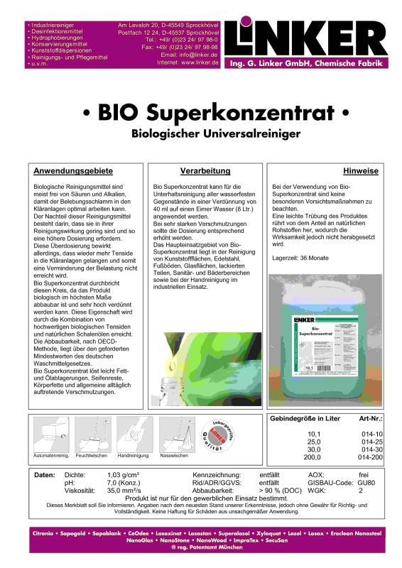 - Beschreibung BIO Superkonzentrat biologischer Reiniger für Haushalt Sanitär Küche 10,1 LEnthält umweltfreundliche Inhaltsstoffe. Das prod… Mehr