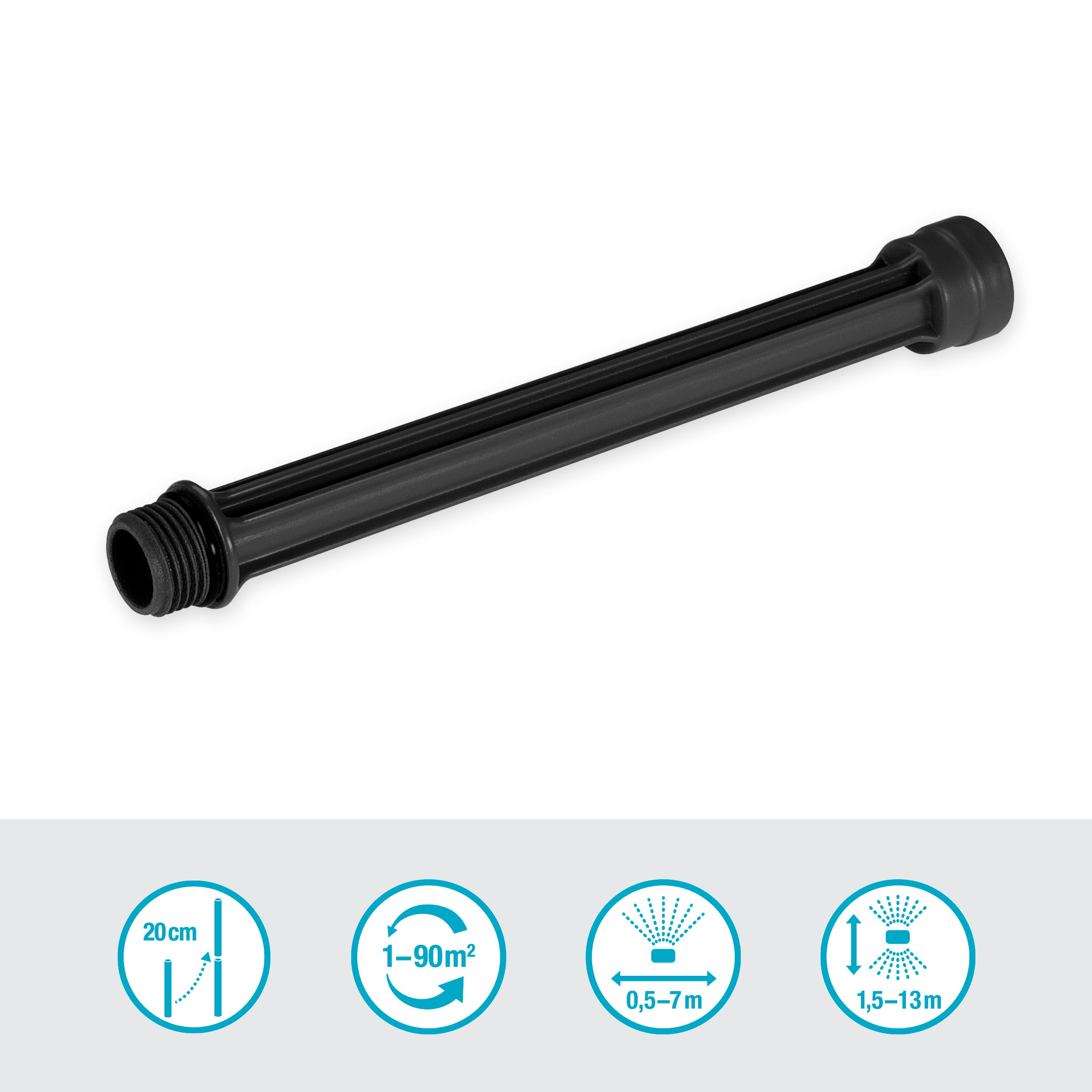GARDENA Verlängerungsrohr für OS 90. Zur Erhöhung des GARDENA Viereckregners OS 90. Das Verlängerungsrohr für den Viereckregner OS 90 von GARDENA ist ideal, um sich im Micro-Drip-System dem Pflanzenwachstum optimal anzupassen. Es ist für die flächendeckende Bewässerung von Pflanz- und Blumenflächen eine gute Unterstützung und erhöht den Regner um jeweils 20 bis maximal 40 cm. Die einfache Installation geht schnell von der Hand. Das Verlängerungsrohr wird zwischen Regnerkopf und Regnerfuß gesteckt. Der Viereckregner OS 90 (Art.-Nr. 13325-20) beregnet Flächen zwischen 1 und 90 m². Er überzeugt durch die regulierbare Wurfweite von 1,5 bis 13 m, die einstellbare Sprengbreite von 0,5 m bis maximal 7 m und den flexibel regulierbaren Wasserdurchfluss. Verlängerungsrohr zur Erhöhung des Viereckregners OS 90 (Art.-Nr. 13325-20) um 20 cm; ideal zur Unterstützung einer flächendeckenden Bewässerung von Pflanz- und Blumenflächen. Einfache Installation zwischen Regnerkopf und Regnerfuß durch Zusammenstecken, maximale Verlängerung bis 40 cm. Verlängerungsrohr ermöglicht das Beregnen selbst nach Pflanzenwachstum. Viereckregner OS 90 (Art.-Nr. 13325-20) beregnet Flächen zwischen 1 und 90 m². Flexible Regulierbarkeit der Sprengbreite des Viereckregners OS 90 (Art.-Nr. 13325-20) bis maximal 7 m und Wurfweite von 1,5 bis 13 m sowie des Wasserdurchflusses.