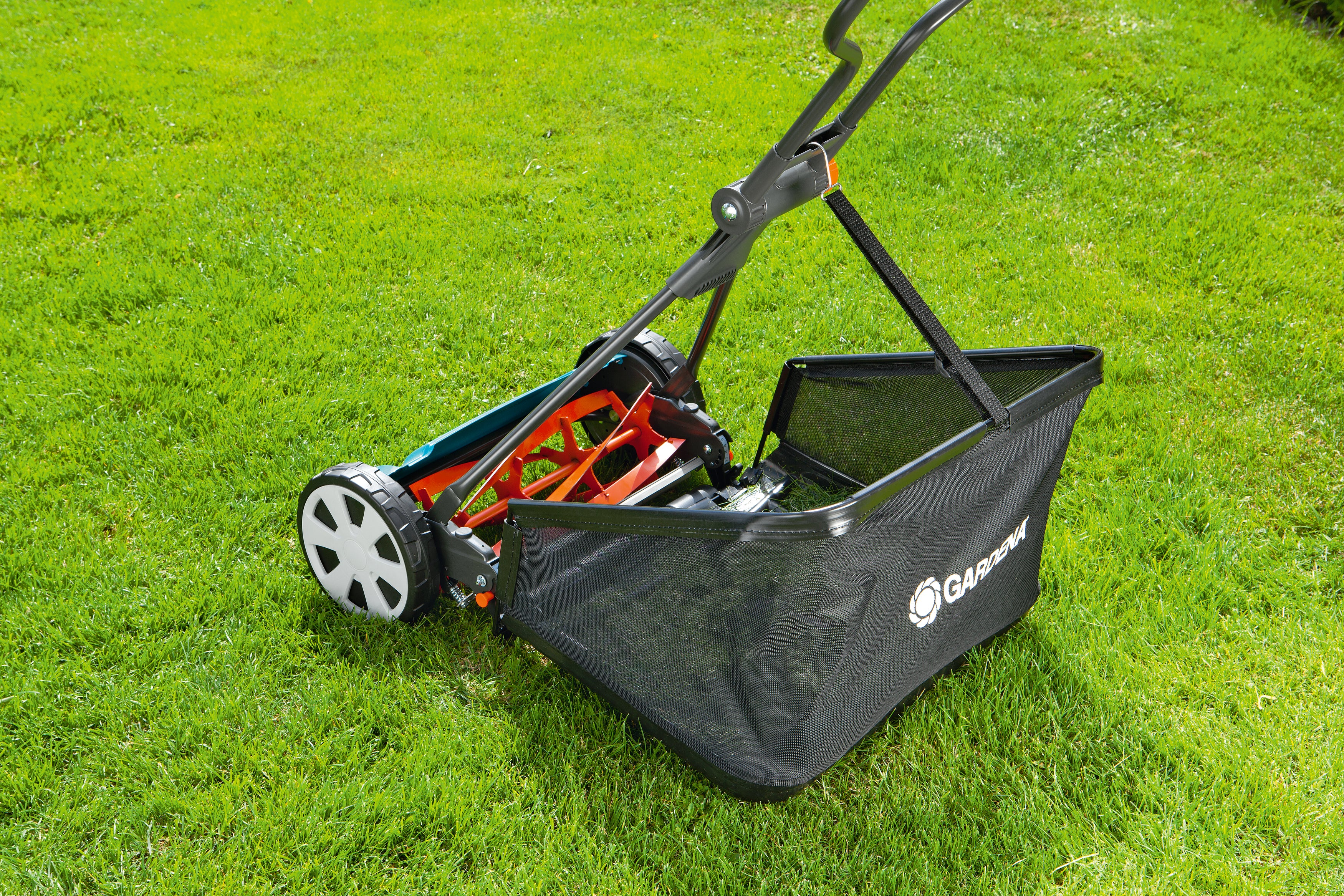 GARDENA Spindelmäher Classic 400. Für ein exaktes Schneiden wie mit der Schere. Der Spindelmäher Classic 400 von GARDENA ist umweltfreundlich und spart Geld, da er ohne Strom funktioniert. Die berührungslose Präzisions-Schneidtechnik mit Messerwalze und Untermesser sorgt für ein leichtgängiges Schieben und einen exakten Rasenschnitt wie mit der Schere auf einer Fläche bis zu 200 m². Das Besondere: Die gehärtete, antihaftbeschichtete Messerwalze aus Qualitätsstahl und das geschliffene Untermesser berühren sich nicht und ermöglichen ein angenehmes und geräuscharmes Arbeiten sowie ein leichtes Schieben. Das Rasenmähen mit dem Spindelmäher ist geräuscharm und überzeugt dank der Räder mit Spezialprofil mit guter Griffigkeit sowie leichter Führung. Die Schnitthöhe ist zwischen 12 und 42 mm per Regler einzustellen und durch eine Kontrollskala einsehbar. Mit dem separat erhältlichen Grasfangkorb (Art.-Nr. 4029-20) bietet GARDENA das passende Zubehör. Durch ihn wird das Schnittgut vom Spindelmäher Classic 400 sofort aufgefangen. Nicht nur beim Mähen leistet der Griff gute Dienste, sondern auch beim Transport des 8,9 kg leichten Handrasenmähers. Der Spindelmäher kann durch ein teilbares Gestänge einfach und schnell zusammengeklappt werden. Die Aufbewahrung ist so besonders platzsparend und der Transport einfach. GARDENA gewährt auf das Qualitätsprodukt Made in Europe eine Herstellergarantie von zehn Jahren. Angenehmes und kraftsparendes Arbeiten durch berührungslose Präzisions-Schneidtechnik; leicht zu schieben und geräuscharm. Teilbares Gestänge erlaubt einfachen Transport und platzsparende Aufbewahrung. Schnitthöhe einstellbar per Regler in 4 Stufen von 12 bis 42 mm; mit Kontrollskala auf beiden Seiten. Räder mit Spezialprofil: für gute Griffigkeit und leichte Führung des Spindelmähers auf dem Rasen. Made in Europe: Qualität aus Europa mit einer 10 Jahre langen GARDENA Herstellergarantie.