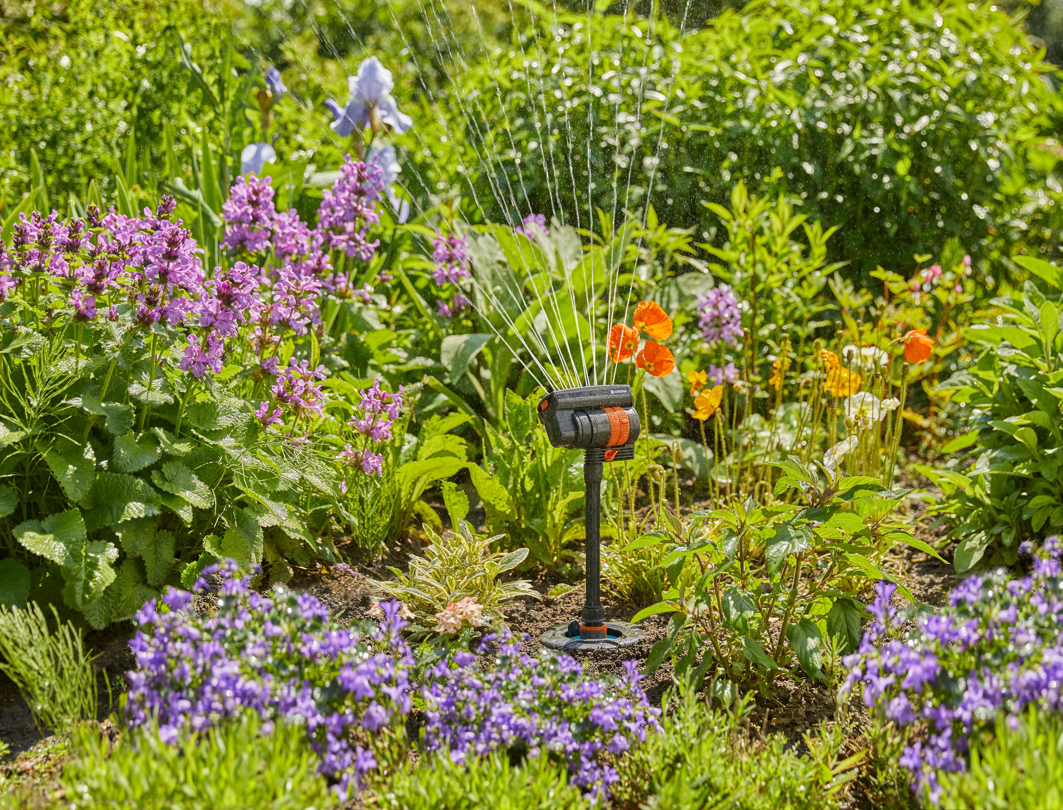 GARDENA Pipeline Viereckregner. Für eine präzise, flexible und gleichmäßige Bewässerung. Der Pipeline Viereckregner von GARDENA ist Teil des Pipeline Systems, schnell an einer Wassersteckdose mit nur einem Klick angeschlossen und dann sofort einsatzbereit. Mehrere Einstellmöglichkeiten bieten eine Vielfalt an Optionen für die Gartenbewässerung. Die Intensität lässt sich durch eine Regulierung des Wassermengendurchflusses einstellen. Das ermöglicht eine individuelle Anpassung, zum Beispiel für die Bewässerung des Rasens oder des Gemüsebeetes. Für eine präzise, flexible und gleichmäßige Bewässerung auf einer Fläche von 9 bis 216 m² sorgen die Düsen des Viereckregners. Durch die gleichmäßige Bewässerung können auch keine Pfützen entstehen. Zusätzlich lässt sich mit Hilfe der Einstellregler sowohl die Reichweite zwischen 3 und 18 Metern als auch die Sprengbreite zwischen 3 und 12 Metern regulieren. Sogar eine Bewegung des Regnerkopfes um 360° ist per Hand möglich. Ein weiteres Merkmal ist die leichte Wartung des Gartensprengers. Der eingebaute Filter im Regner ist herausnehmbar und unter fließendem Wasser zu reinigen, während die aus weichem Kunststoff bestehenden Sprühdüsen mit dem Finger abgewischt werden können, um eventuelle Kalkablagerungen zu entfernen. Im Sprinkler sind hochwertige Materialien verbaut, die ihn vor UV-Licht schützen. Beim Pipeline Viereckregner handelt es sich um ein Qualitätsprodukt Made in Europe. Einfacher Anschluss durch das Original GARDENA System an eine Wassersteckdose. Reichweite (3–18 Meter) sowie die Sprengbreite (3–12 Meter) mit Reglern einstellbar, für eine gleichmäßige und präzise Bewässerung auf Flächen von 9 bis 216 m²; Feinjustierung des Sprühbilds durch die Wassermengenregulierung. Einfache Wartung durch eingebauten Filter und leichte Kalkentfernungen per Fingerwischen durch weiche Sprühdüsen. Durch hochwertige Materialien vor UV-Licht geschützt. Made in Europe: Qualität aus Europa.