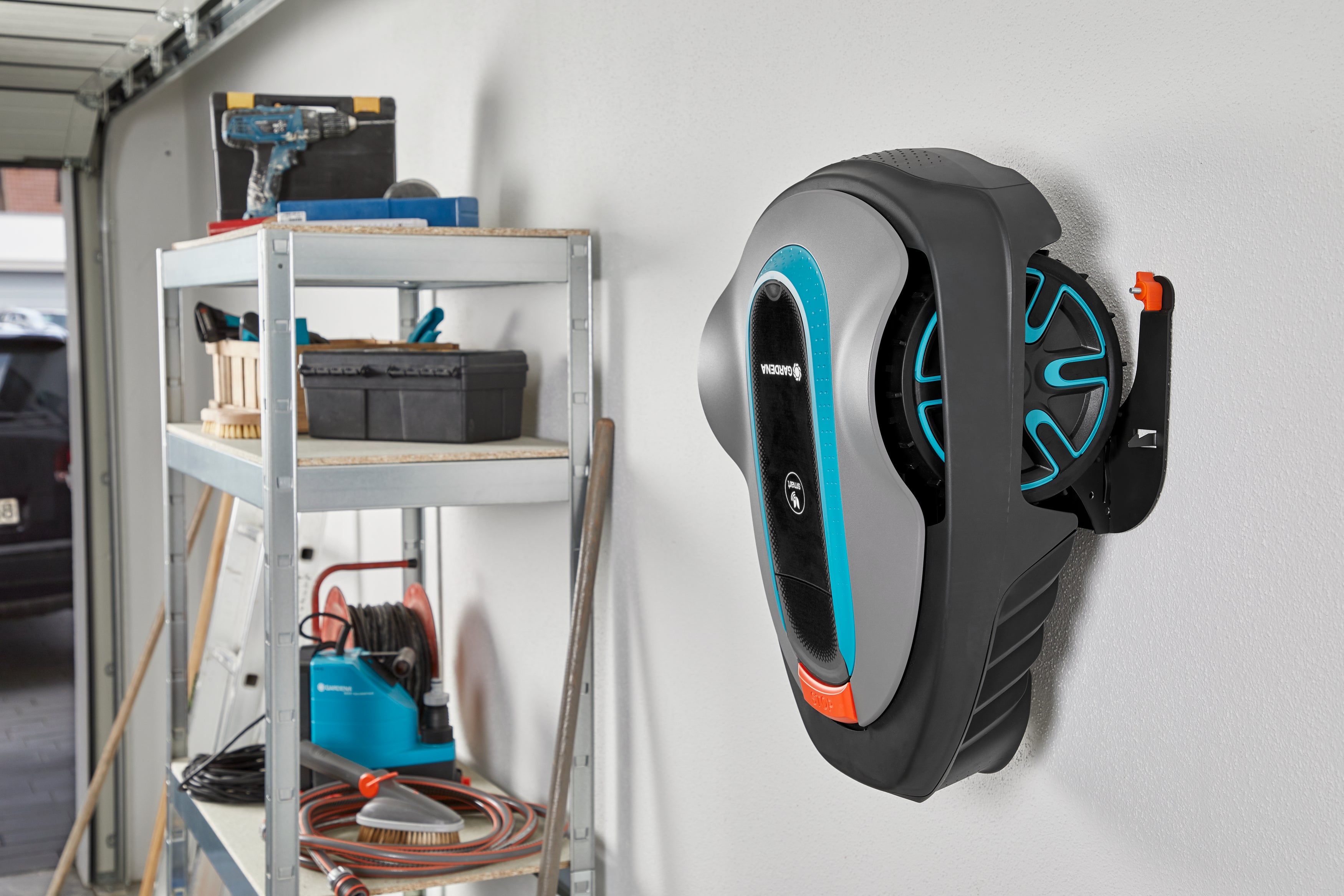 GARDENA Wandhalterung (für SILENO-Modelle minimo + city + life). Platzsparende Aufbewahrung für SILENO minimo, city und life Mähroboter. Mit der GARDENA Wandhalterung für SILENO-Modelle minimo, city und life können SILENO Mähroboter effektiv, trocken und frostfrei gelagert werden. Das praktische GARDENA SILENO Zubehör bietet Platz für den Rasenroboter und die zugehörige Ladestation. So wird eine platzsparende Aufbewahrung des Mähroboters ermöglicht, wenn er im Winter nicht im Einsatz ist. In der robusten Wandhalterung aus Metall ist der Roboter sicher im Keller oder in der Garage verstaut. Die Halterung ist kompatibel mit allen Modellen von GARDENA SILENO minimo, (smart) SILENO city und (smart) SILENO life. Ideale Wandhalterung für GARDENA SILENO Mähroboter und zugehörige Ladestation. Platzsparende Aufbewahrung im Winter, wenn der Mähroboter nicht im Einsatz ist. Robuste Halterung aus Metall ermöglicht stabilen und sicheren Halt des Mähroboters. Kompatibel mit allen SILENO minimo, (smart) SILENO city und (smart) SILENO life Modellen. -.