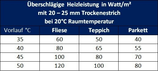 - Energieeinsparung ggü. herkömmlichen Fußbodenheizungssystemen