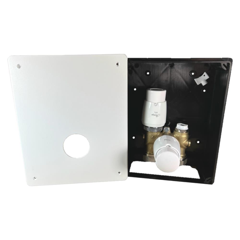 - Thermostatventil und RTL-Ventil im Wandeinbaukasten