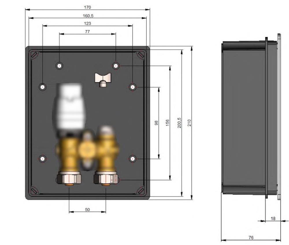 - Thermostatventil und RTL-Ventil im Wandeinbaukasten