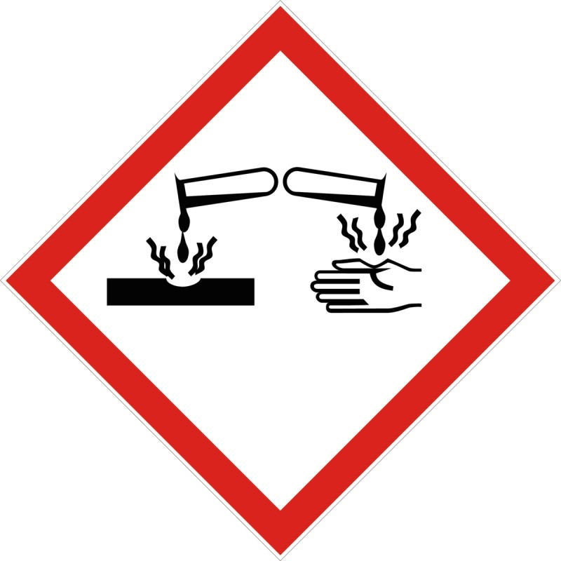 Piktogramme: GHS05 Ätzwirkung / GHS07 Ausrufezeichen (siehe Bilder).