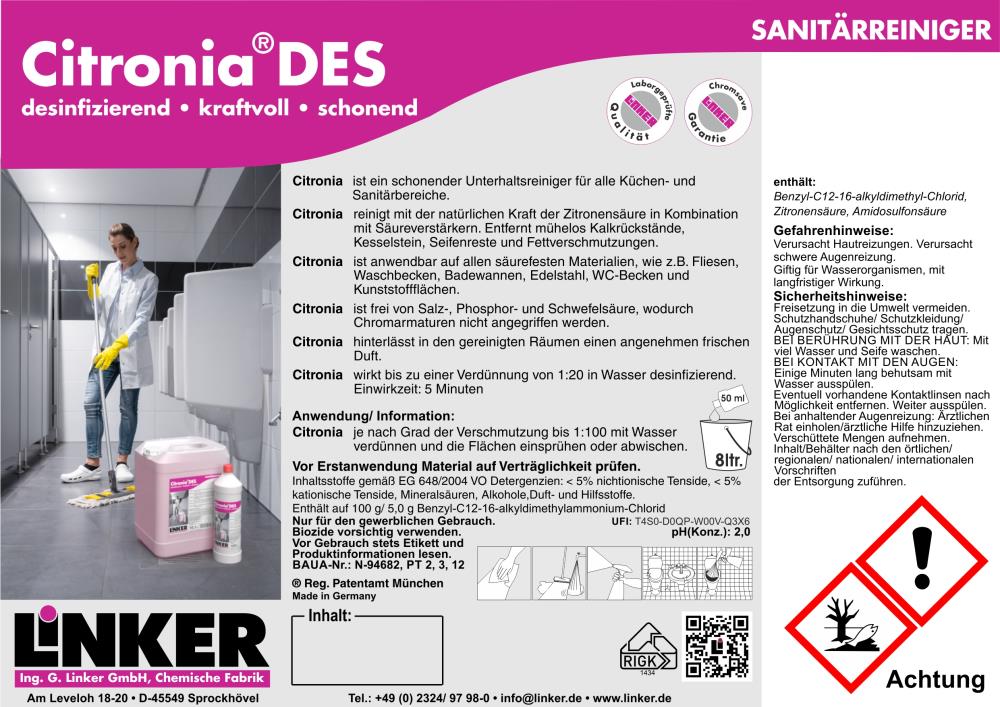 Produktinformationen "Linker Chemie Citronia® Des - Sanitär-und Küchenunterhaltsreiniger 10,1 Liter"
