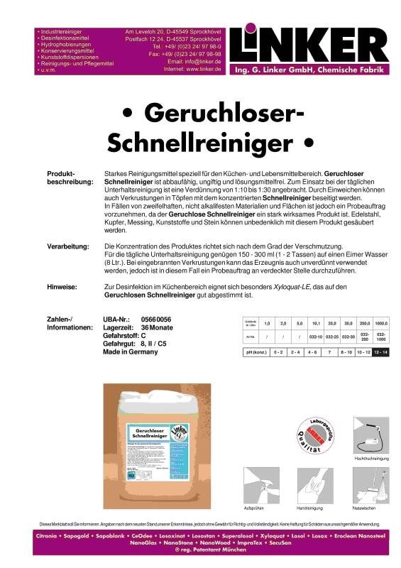 - Beschreibung Linker Chemie Geruchloser Schnellreiniger Küchen- &Lebensmittelbereich 10,1 LStarkes Reinigungsmittel speziell für den K… Mehr