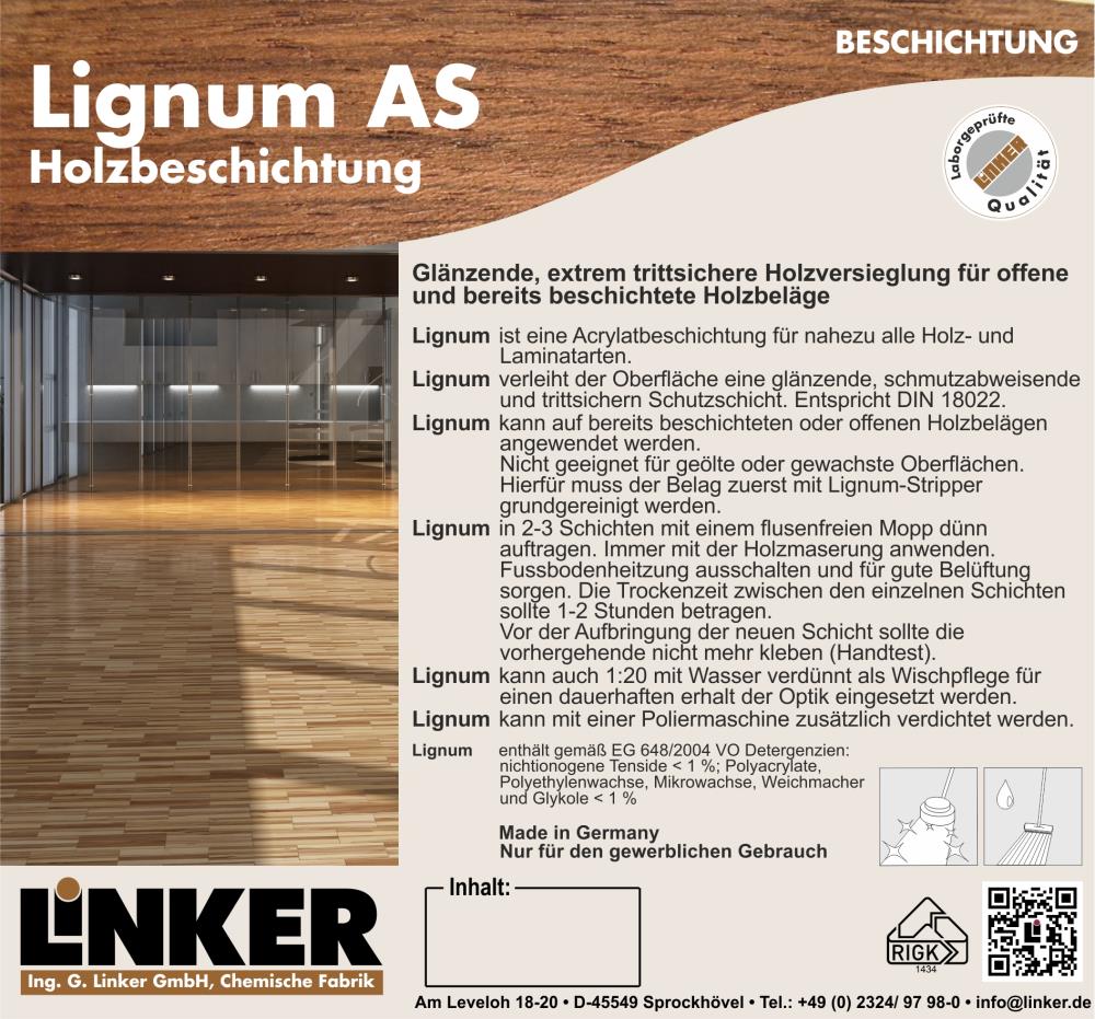 Produktinformationen "Linker Chemie Lignum AS glänzende Holzversiegelung trittsicher 10,1 Liter"