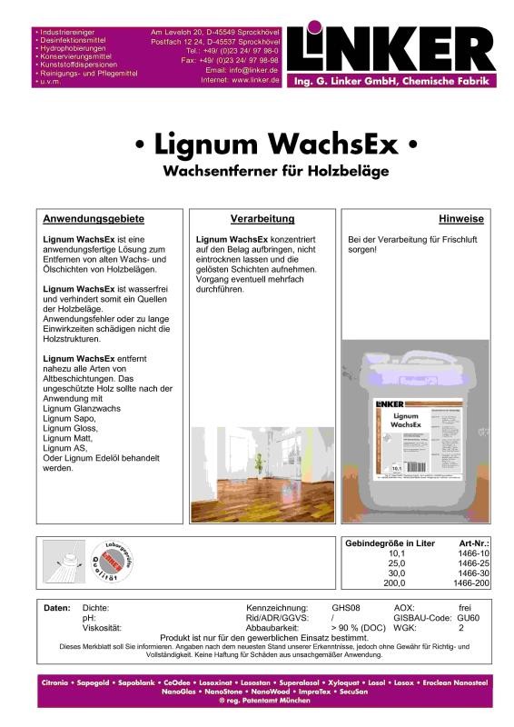 - Beschreibung Linker Chemie Lignum WachsEx Wachsentferner für Holzbeläge 10,1 LiterWachsEx ist eine anwendungsfertige Lösung zum Entfernen… Mehr