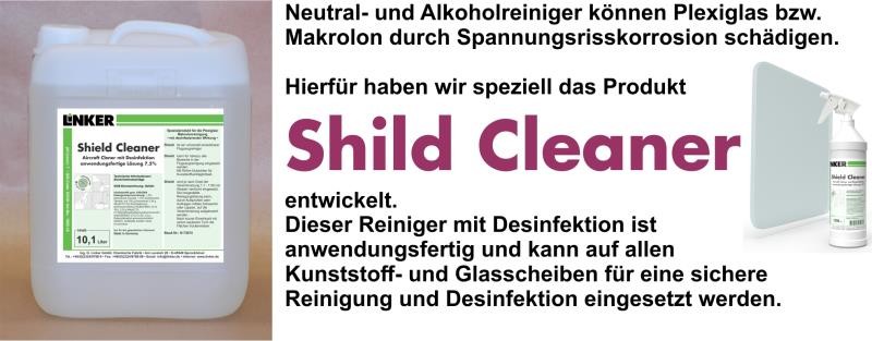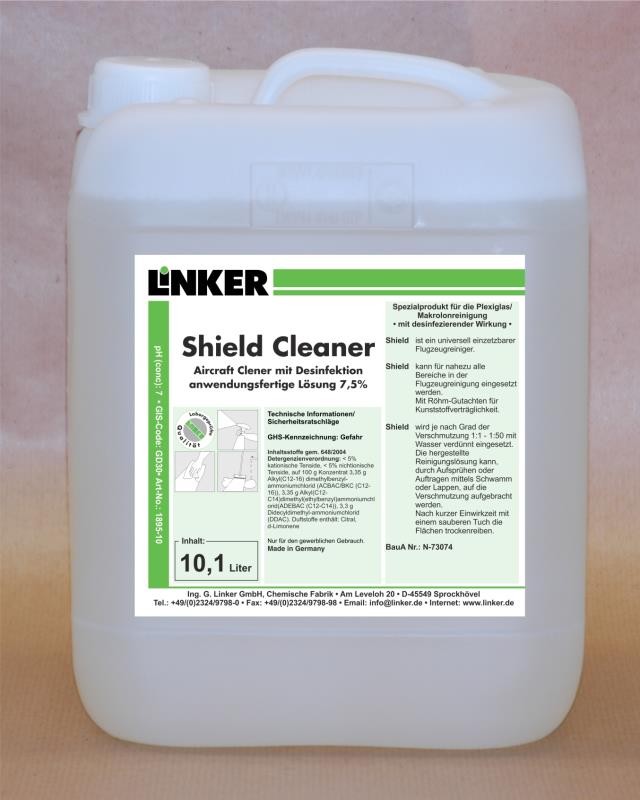 - Beschreibung Linker Chemie Shield Cleaner - Desinfektionsreiniger für alle Klarglasscheiben 10,1 LiterShield Cleaner ist ein neuartiger,… Mehr