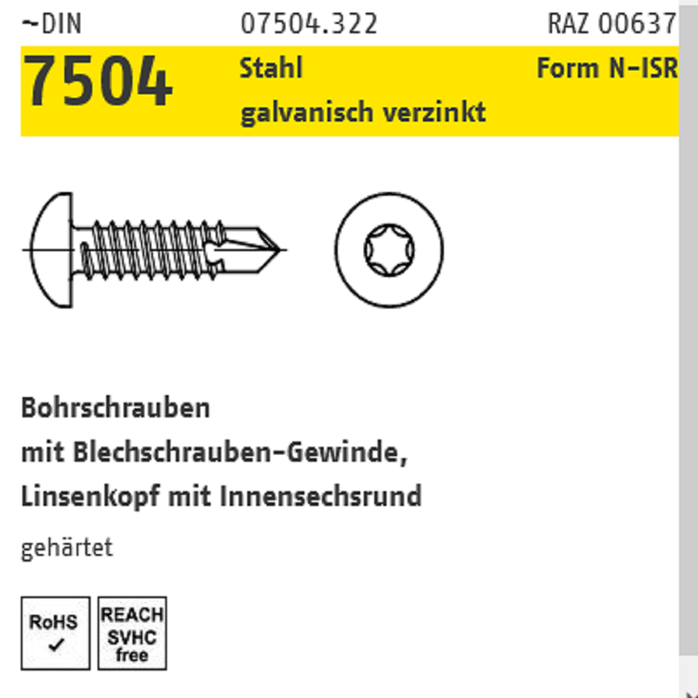 - Beschreibung Reyher Bohrschrauben LiKo galvanisch verzinkt N 3,5x16 mm Innensechsrund T15 DIN 7504 (100 Stück).