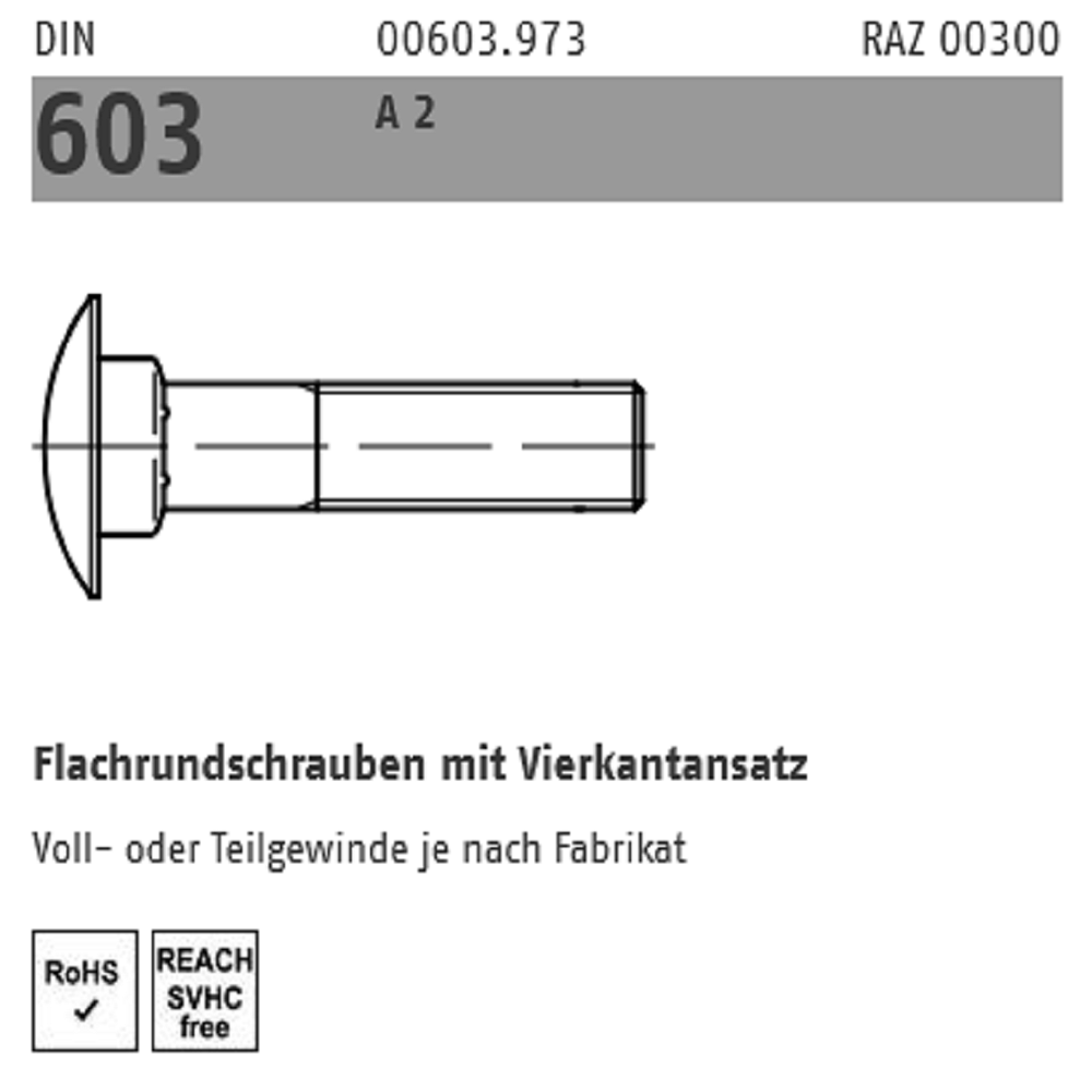 - Beschreibung Reyher Flachrundschrauben ohne Mutter A2 8x40 mm mit Vierkantansatz DIN 603 (50 Stück).