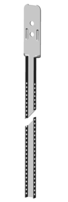 Das Rigips Nonius Oberteil ist aus feuerverzinktem Stahlband und durchgehend gelocht. Am Kopf ist eine Abflachung mit zwei Rundlöchern.