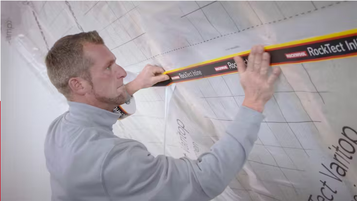Im Anschluss ist die Luftdichtigkeitsebene sach- und fachgerecht auszuführen. Alle Anschlüsse und Durchdringungen sind sorgfältig und luftdicht zu erstellen. Weitere Ausführungshinweise für die luftdichte Ebene sind den Datenblättern unseres Luftdichtsystem RockTect zu entnehmen: www.rockwool.de/rocktect.