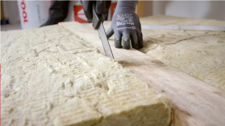 Dämmung aus Steinwolle für die Zwischensparren, Dämmung von Holzrahmen- und Holztafelbauweise.