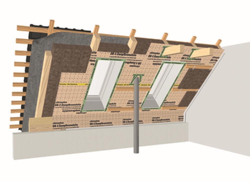 Die Klemmwirkung stellt nur eine Montagehilfe während des Einbauzeitraumes dar. Die dauerhafte Lagesicherung erfolgt, nach dem Verlegen der Luftdichtheitsschicht, durch die Verlegung der Unterkonstruktion für die innere Bekleidung.